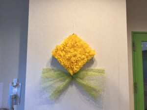 館内に手作り傘を飾り、「明るい」「可愛い」と評判で気持ちも明るくなっています☂