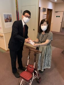 敬老祝膳の際に、ゆうあい最高年齢の入居者様へ