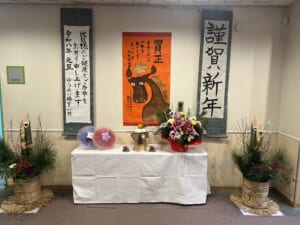 毎年恒例となった職員お手製の門松と干支の絵で新年を迎えました。